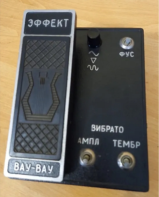 This is the "SPEKTR-1", a very unusual fuzz-wah-vibrato. It uses a mixture of germanium and silicon transistors and has two types of fuzz. The vibrato speed