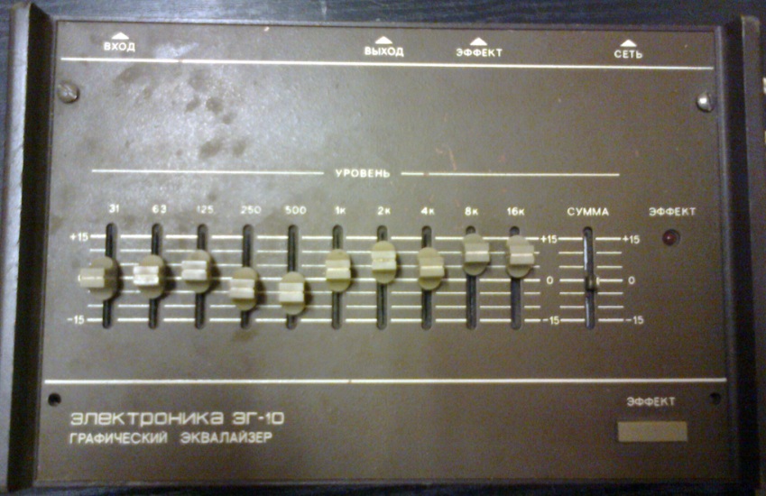 This is the Elektronika "E-01 Equaliser". This is allegedly a parametric EQ, not a graphic EQ and is quite effective. There are six control sliders