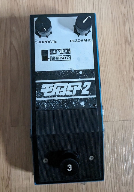 This is the Elektronika "Fazer-2" which is a germanium transistor based phaser/vibrato pedal. The switch selects between the Phaser