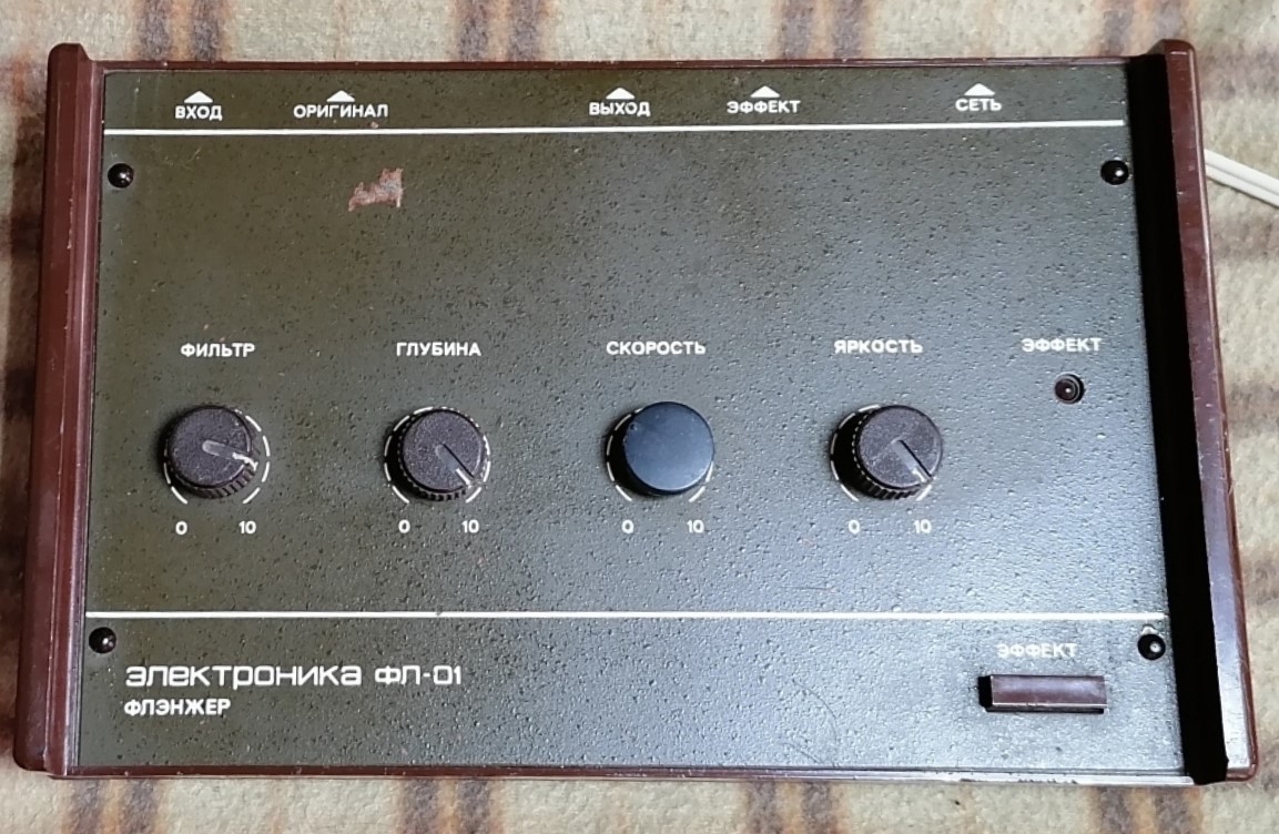 This is the Elektronika "PE-05 Flanger". The controls are Depth, Speed, Delay and Resonance.