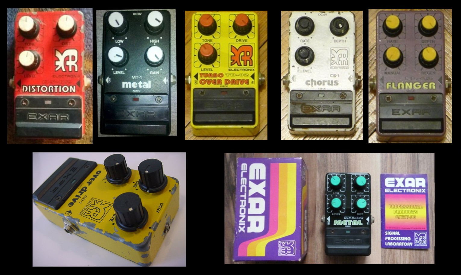 EXAR was started by Wojciech Jaruzelski in 1983 and was still in operation in 2015. Seems the company is now defunct. Their website was up until about 2020 but is gone now (www.exarelectronix.com). They offered fifteen different products around 1989-1995: AD-1 Delay, CP-1 Compressor, CS-1 Chorus, DQ-1 Doctor Q, DS-1 Distortion, EF-1 Envelope Filter, FL-1 Flanger, GE-1 Graphic Equalizer, MT-1 Metal, NG-1 Noise Gate, OC-1 Octaver, OD-1 Over Drive, PH-1 Phasing, PH-2 Phasing and the TM-1 Tremolo.