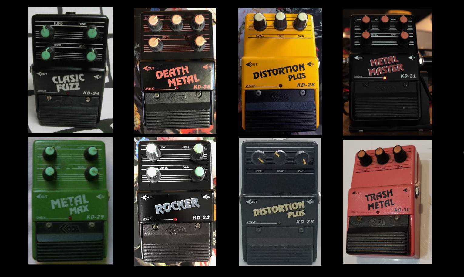 A few examples of the KODA KD series pedals are shown below. Some of these, such as the green Metal Max, are dated to the mid-1990s.