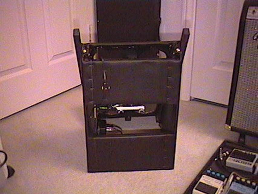 It is permanently attached to the stand with a metal strap. This assembly has also been removed now that I am using the stand with different amp. The fan may have been a little overkill, but I design HVAC systems for a living, so what else would you expect?! Of course, the amp that sits on this stand now has a fan in it, which I installed... |