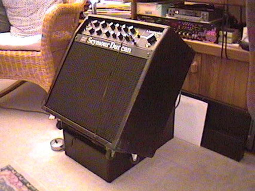I had an idea to build a stand for my amp. Since I am planning on keeping it at the church I attend, I thought it could be something semi-permanent. I wanted it to be tilted back so that it would act as a stage monitor. So this is what I came up with. Below is some pictures: