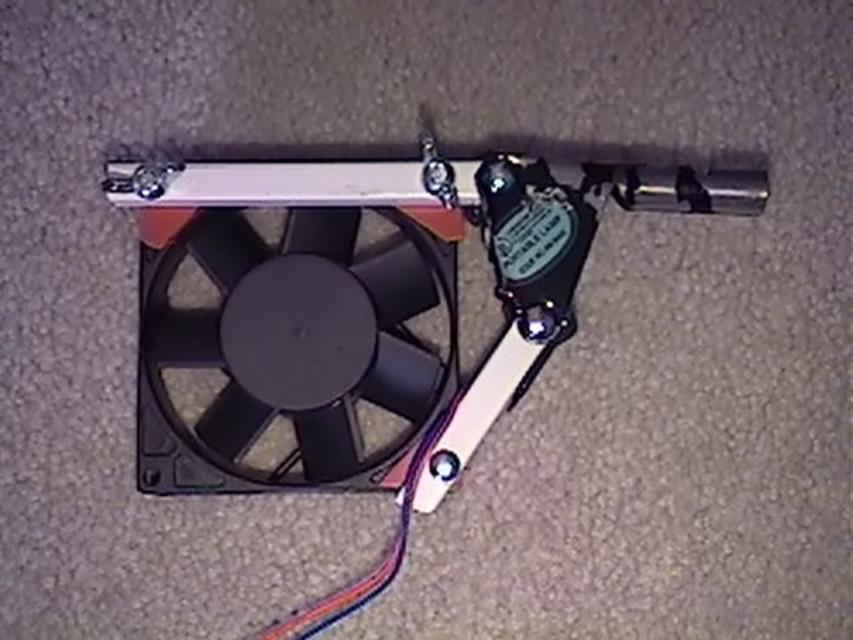 Then I attached the fan to the arms using long machine screws and