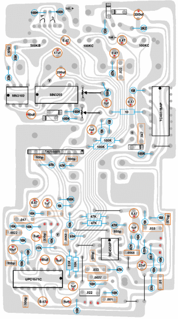 the lower left corner of the PCB is an NEC uPC1571 compander chip which is probably included