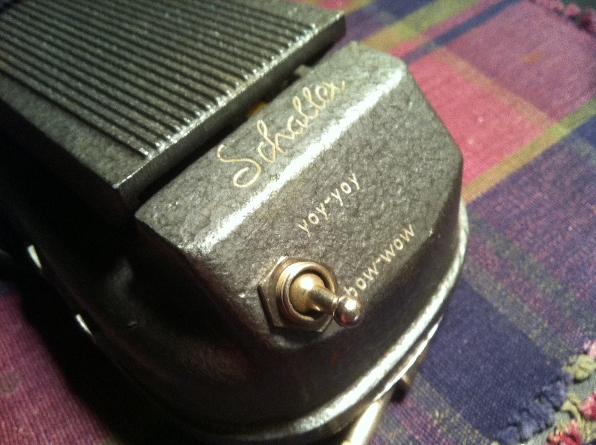 On the toe end of the pedal there is a SPST toggle switch that selects between "bow wow" and "yoy yoy" modes. The switch was made by Marquardt.