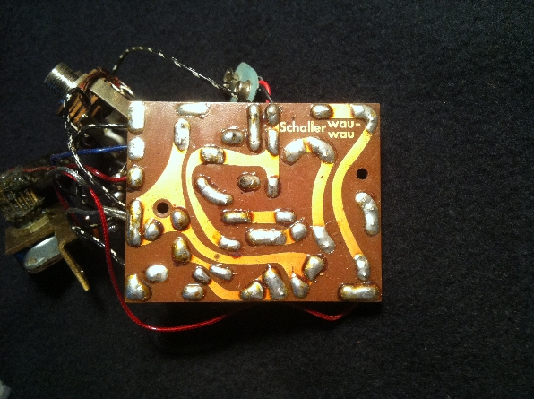Here is the underside of the PCB. Typical design for the time period it's from. Notice it simply says "Schaller Wah-Wau".