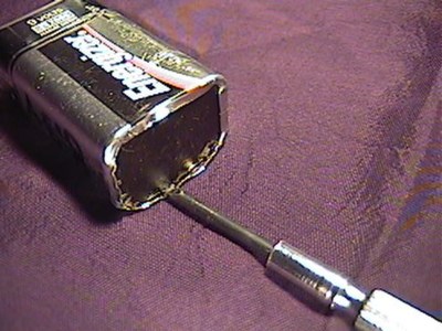 The first thing to do is to get a worn out 9V battery and pry the metal casing away from