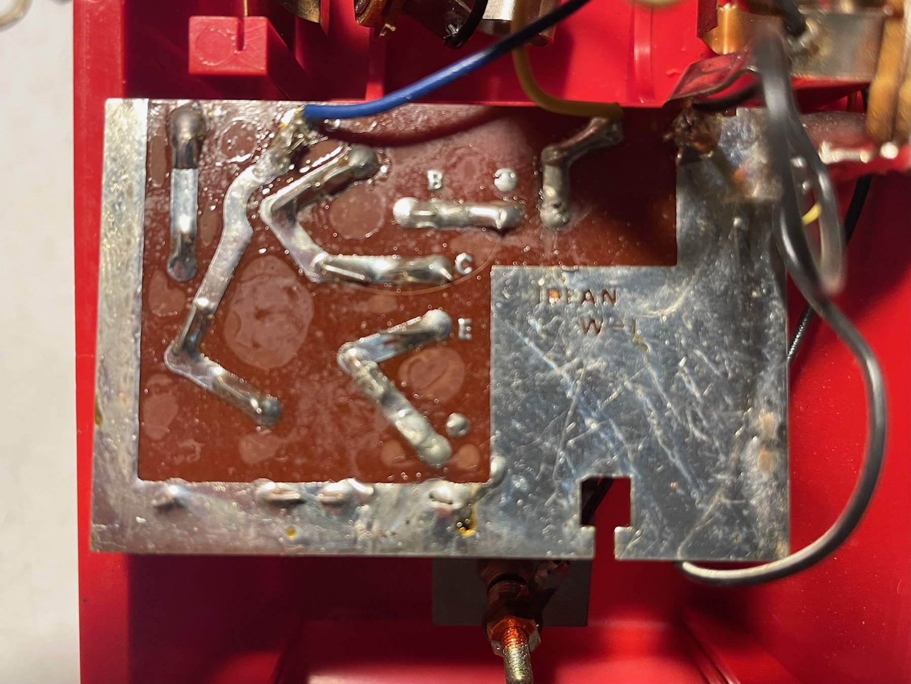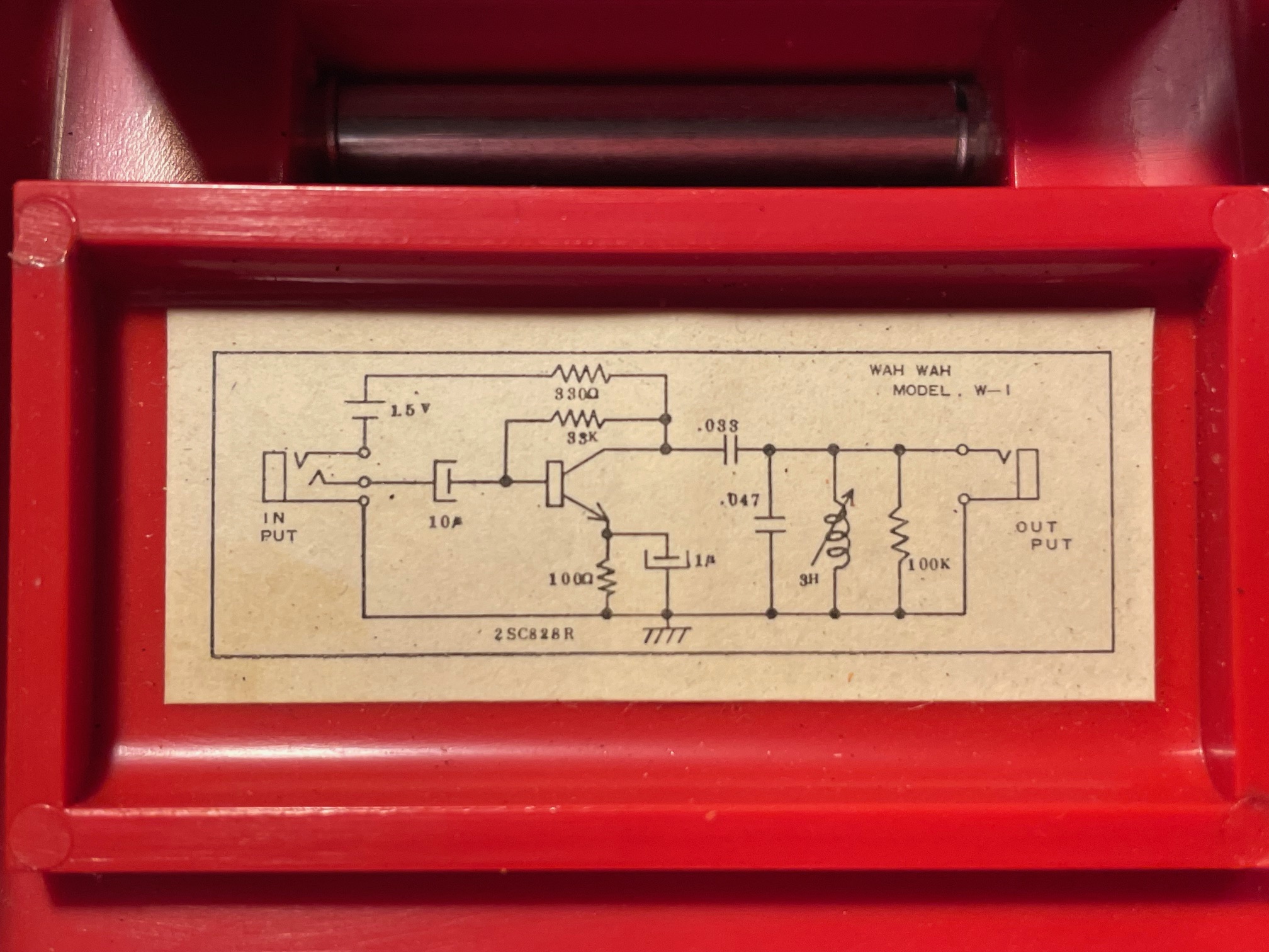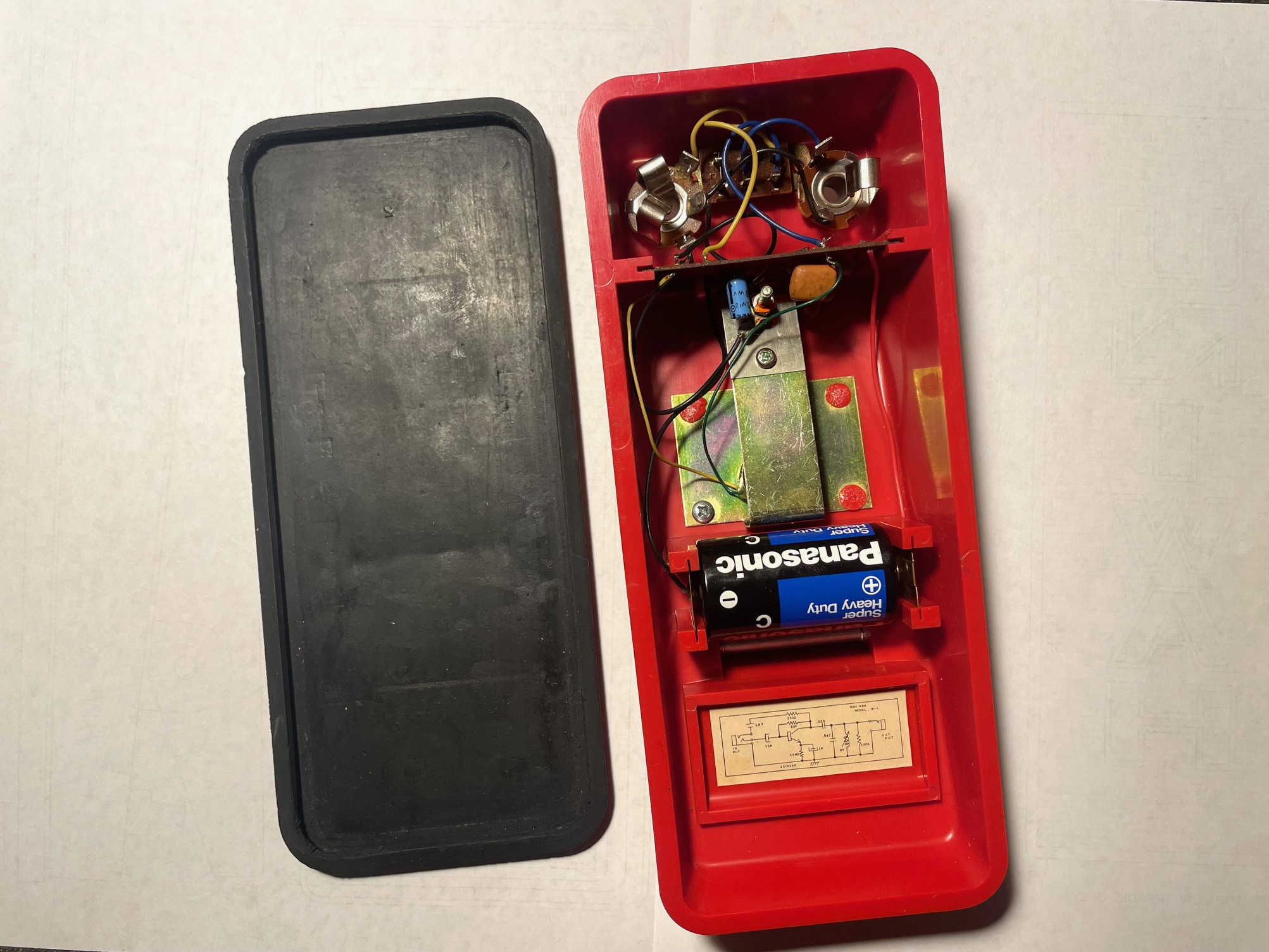 This somewhat obscure red plastic wah pedal has intrigued me for many years. I think I first heard of one about 20 years ago. What I found fascinating was