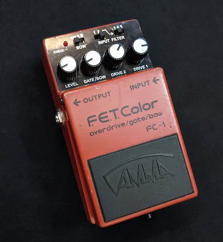 In the time period just prior to the collapse of the USSR, and in the post-Soviet 90s, there were many other more modern and conventional looking guitar pedals on the market in Russia et al. Brands such as Lell, Crock, Avia, Sound JS, Venta, AMT Electronics (made in West Siberia) and Gamma (aka Yerasov). A few of the Gamma pedals are shown below. They look to be essentially copies of Boss-Roland products, at least as far as the styling and enclosure design goes. Some appear to be unique designs, such as the FET Color FC-1, which seems to be something like a Boss OD-1 combined with the Boss Slow Gear or something along those lines. The product line of Crock and Sound JS are also heavily influenced by Boss pedals.