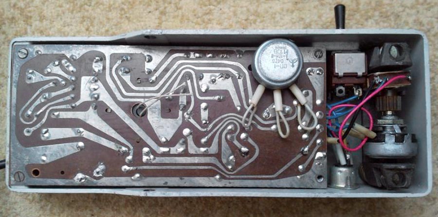 This is the Kazan "Kvaker". It was the first Soviet-era guitar pedal that I acquired. It uses a unique circuit which does not use an inductor.
