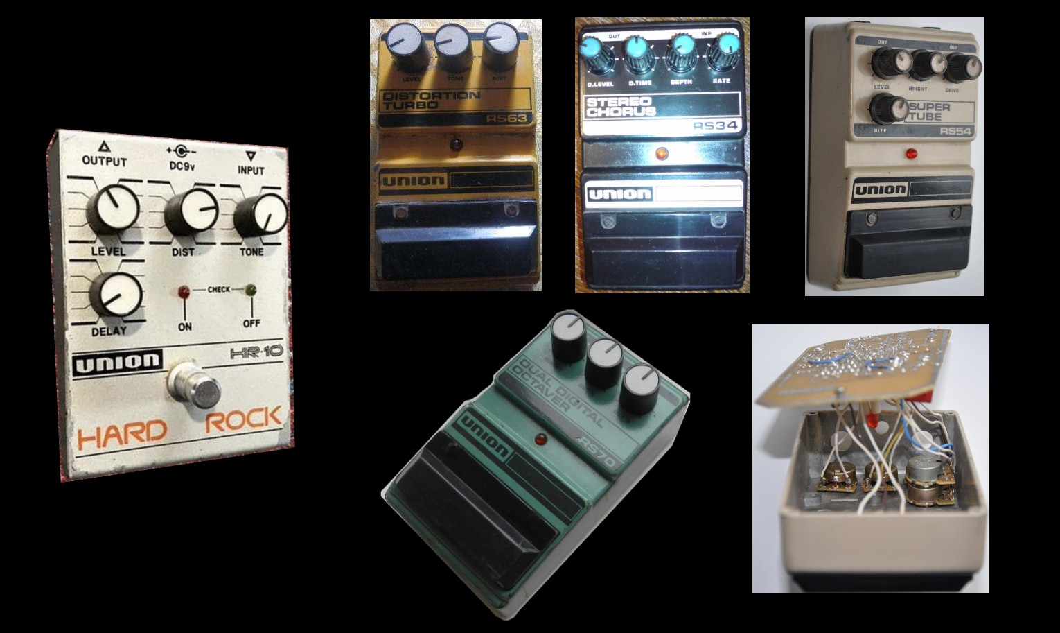 from a sort of ElectroHarmonix style enclosure to basically blatant copies of USA manufactured DOD pedals. They look so much alike that you might mistake a Union pedal