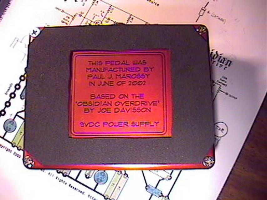 the bottom of the pedal that it is an Obsidian Overdrive by Joe Davisson. |