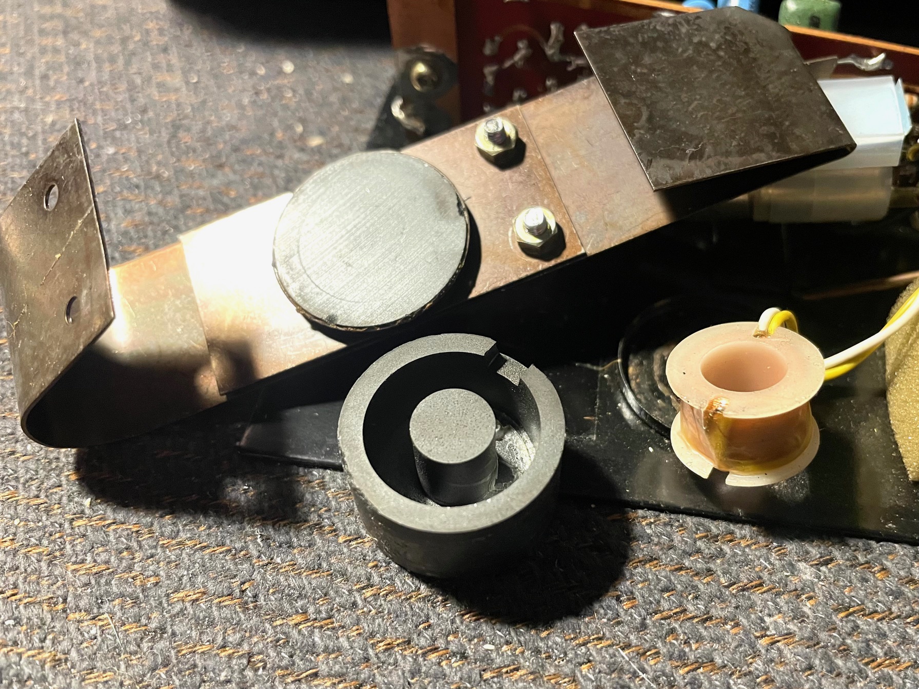 Here is a common problem that these Uniwahs have - the inductor parts coming loose from the housing. When these become unattached it starts to sound weak/bad.