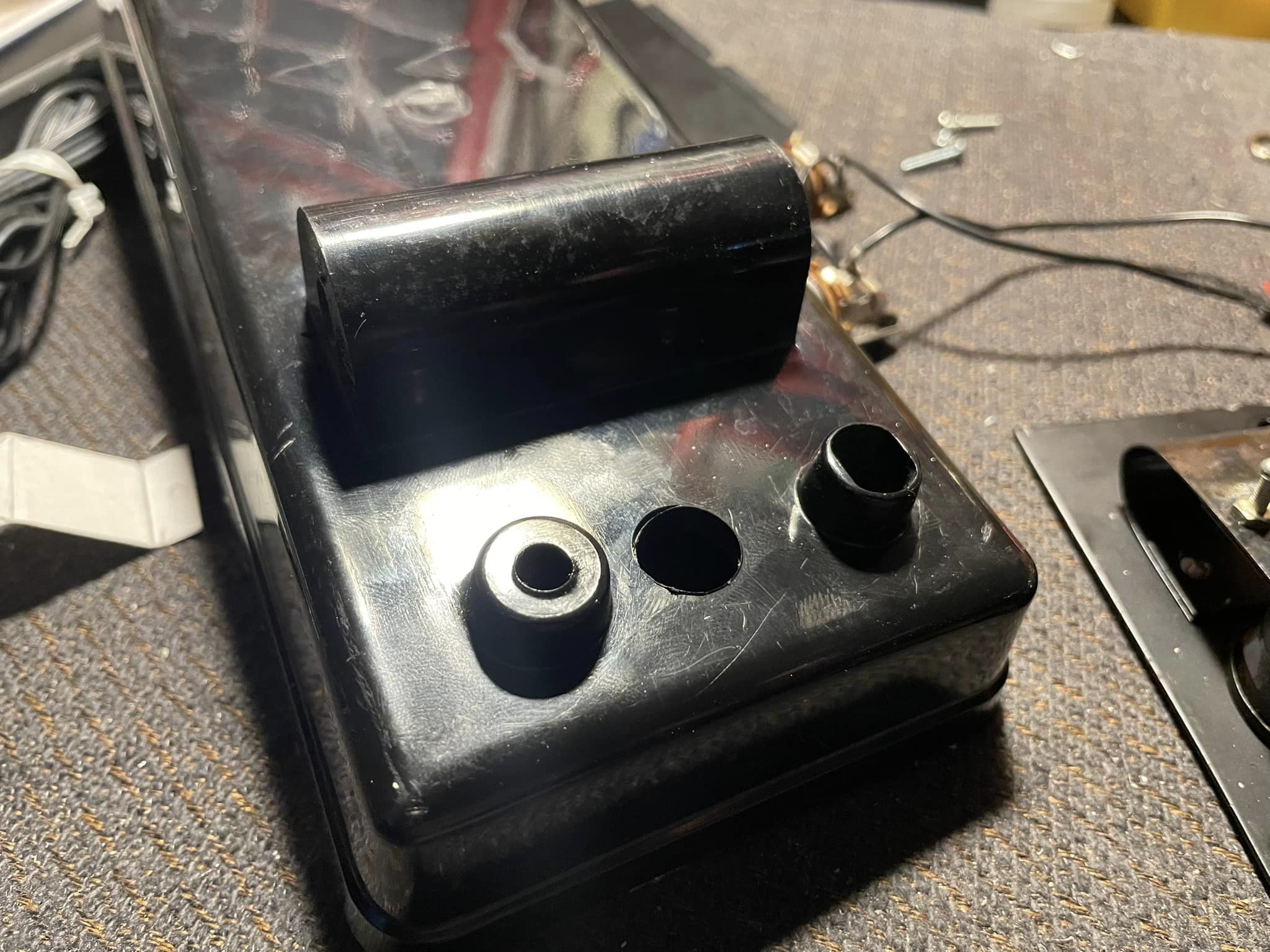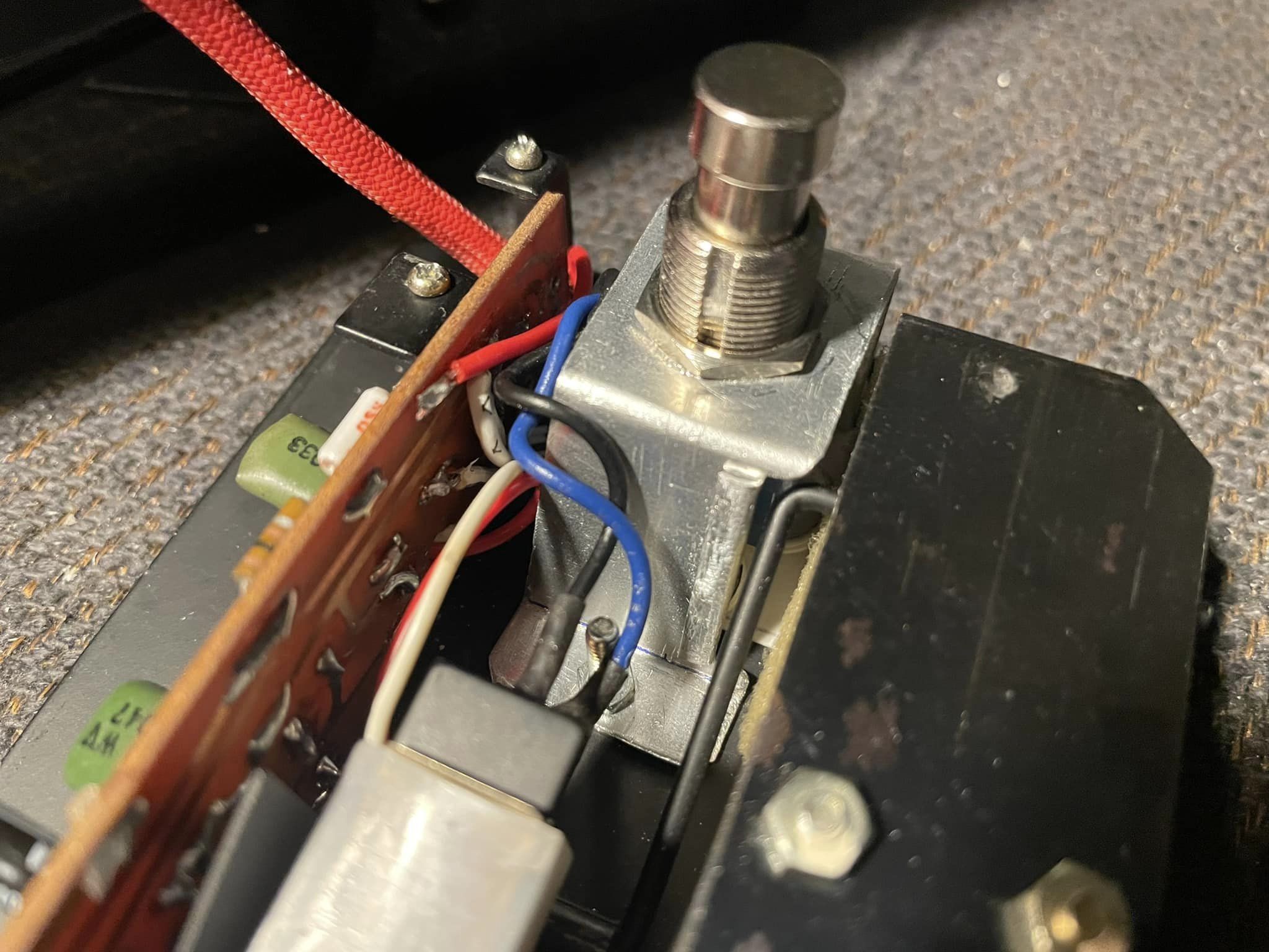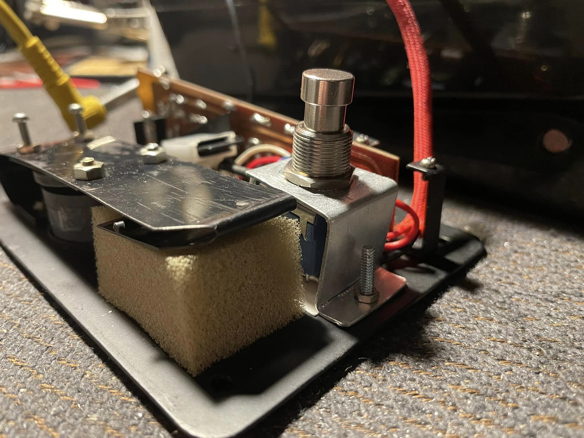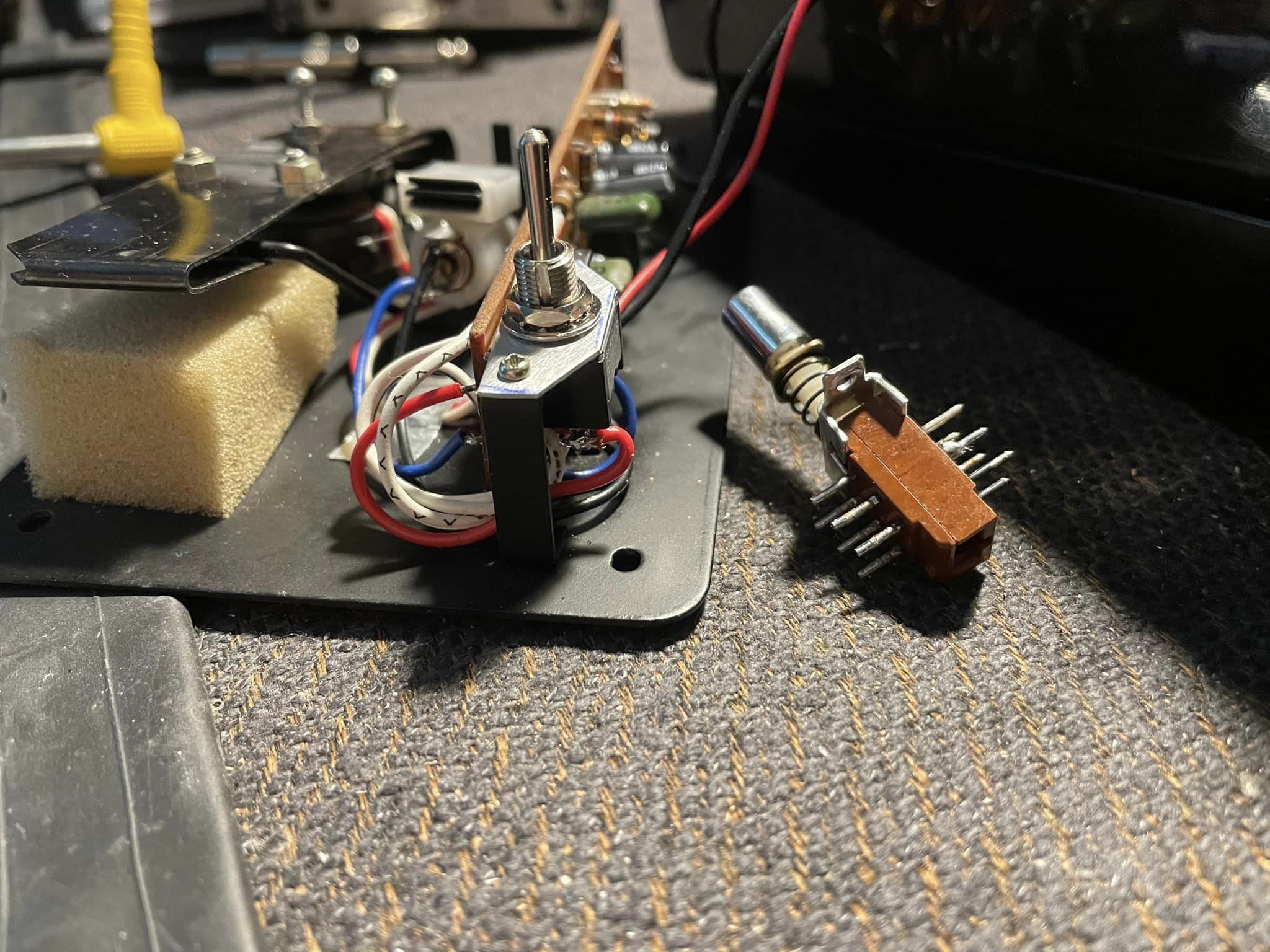 This was my temporary solution of using a DPDT toggle switch while I was sourcing a replacement switch. I made a bracked to hold it in place