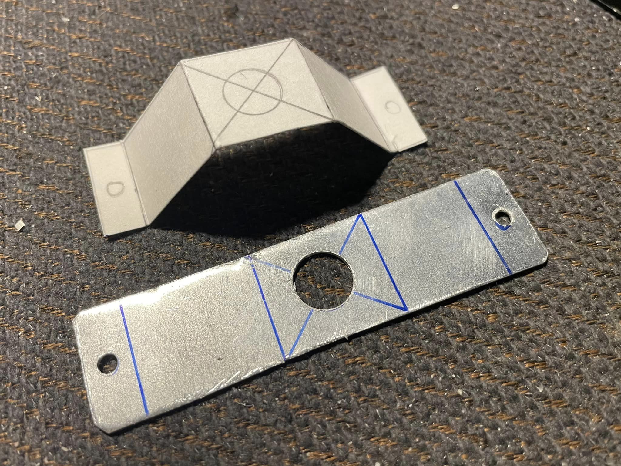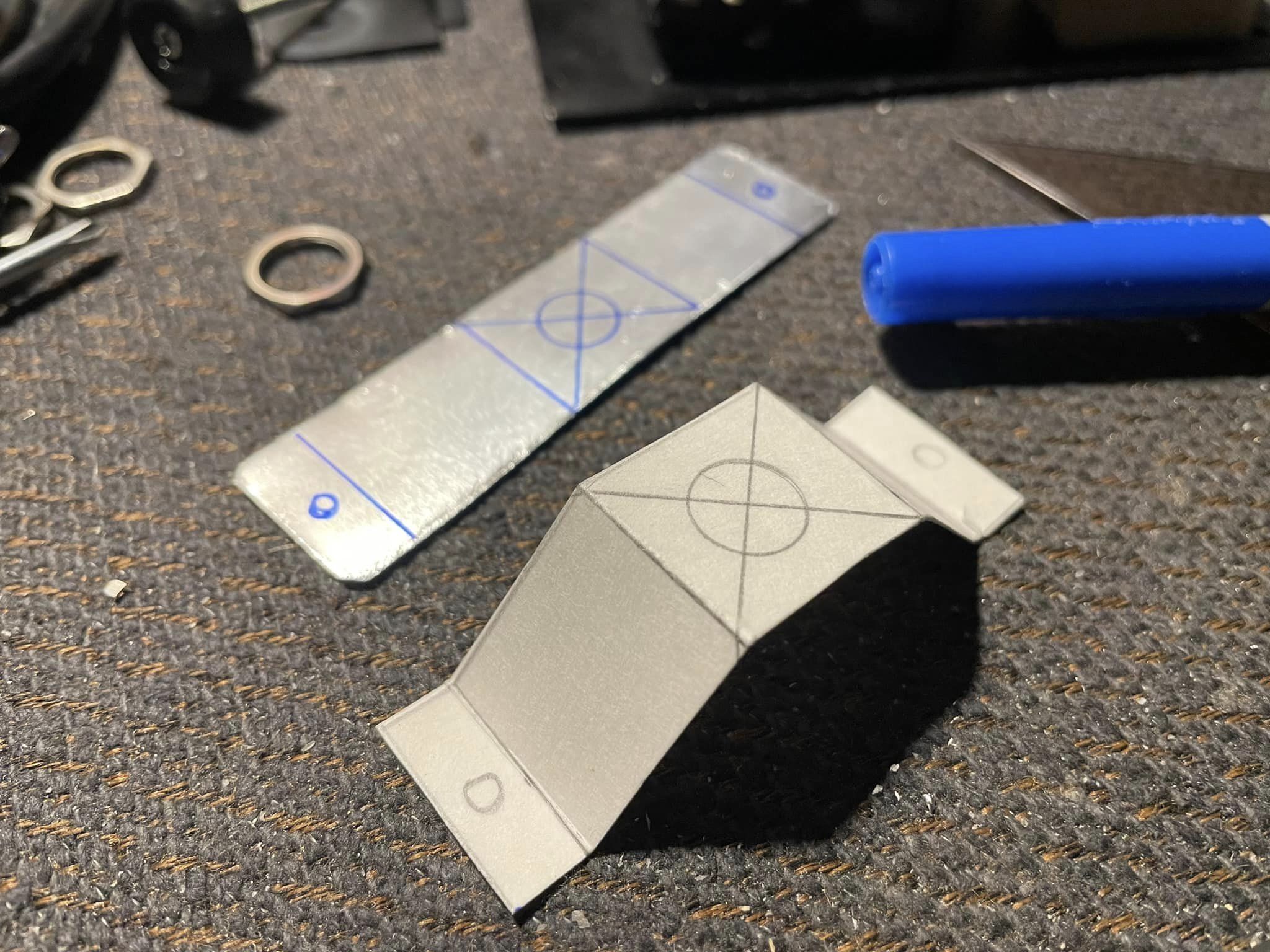 Here I had just finished drilling the necessary holes. The next step was bending it as needed with a vice and needle nose pliers. I like that aluminum is