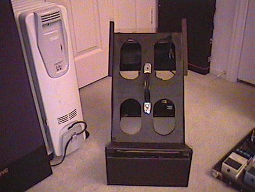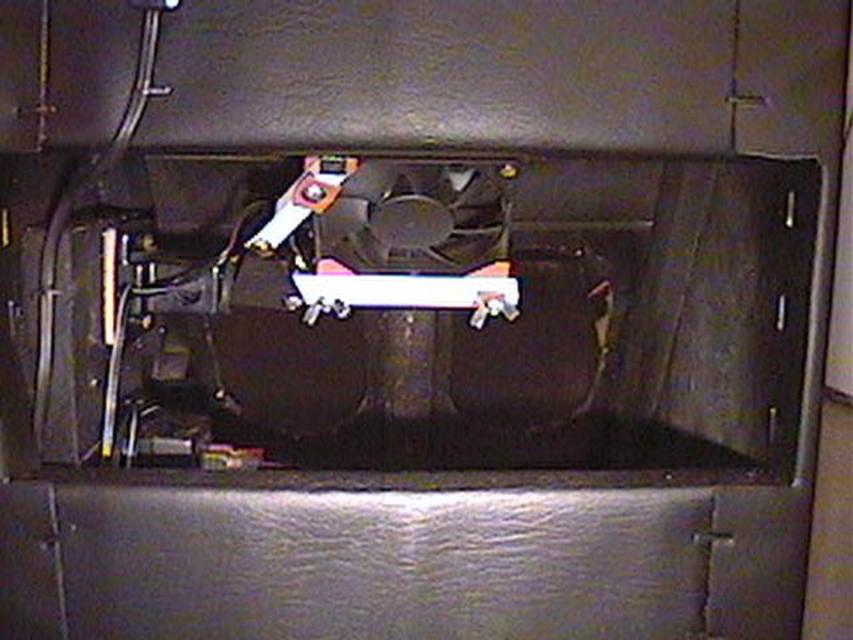 It is permanently attached to the stand with a metal strap. This assembly has also been removed now that I am using the stand with different amp. The fan may have been a little overkill, but I design HVAC systems for a living, so what else would you expect?! Of course, the amp that sits on this stand now has a fan in it, which I installed... |