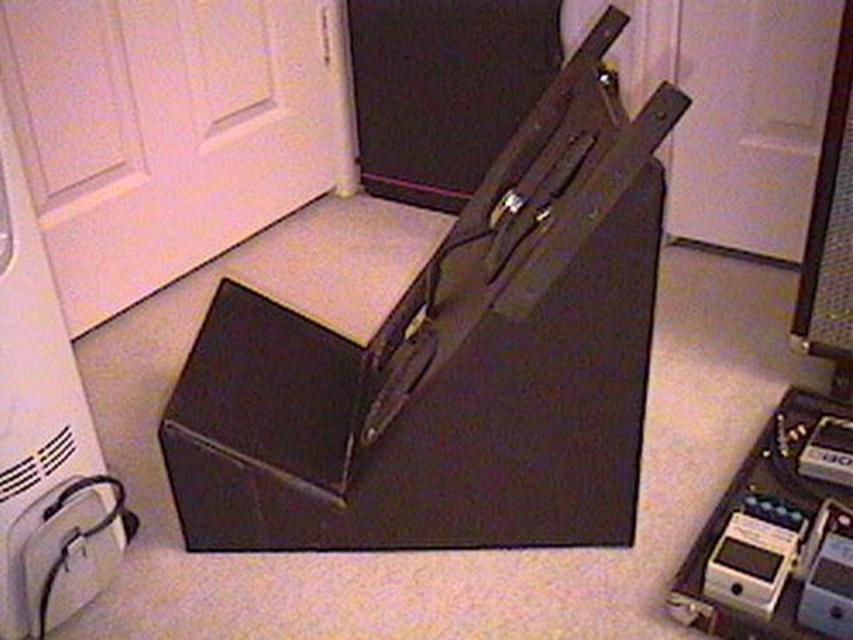 I had an idea to build a stand for my amp. Since I am planning on keeping it at the church I attend, I thought it could be something semi-permanent. I wanted it to be tilted back so that it would act as a stage monitor. So this is what I came up with. Below is some pictures: