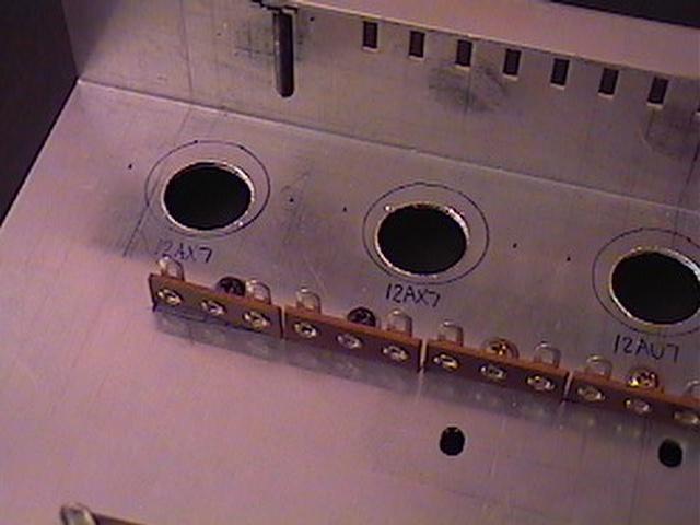 Here is the openings for the preamp tubes. To drill these