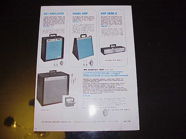 Here are a few pictures of a Gregory Amplifier Corp. catalog from 1966. Back To Gregory Amps Page To My Home Page