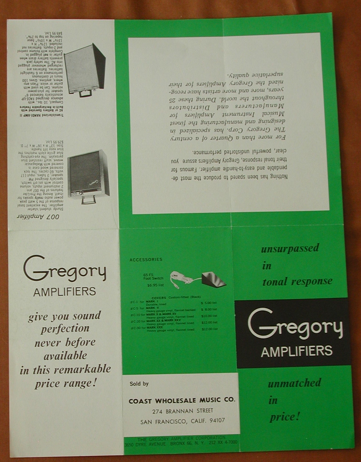 Here is an undated Gregory Amplifier brochure. Notice that it says that they have been in business