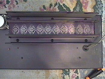 ventilated cover and very large heatsink to dissipate excess heat from the power transistors. |