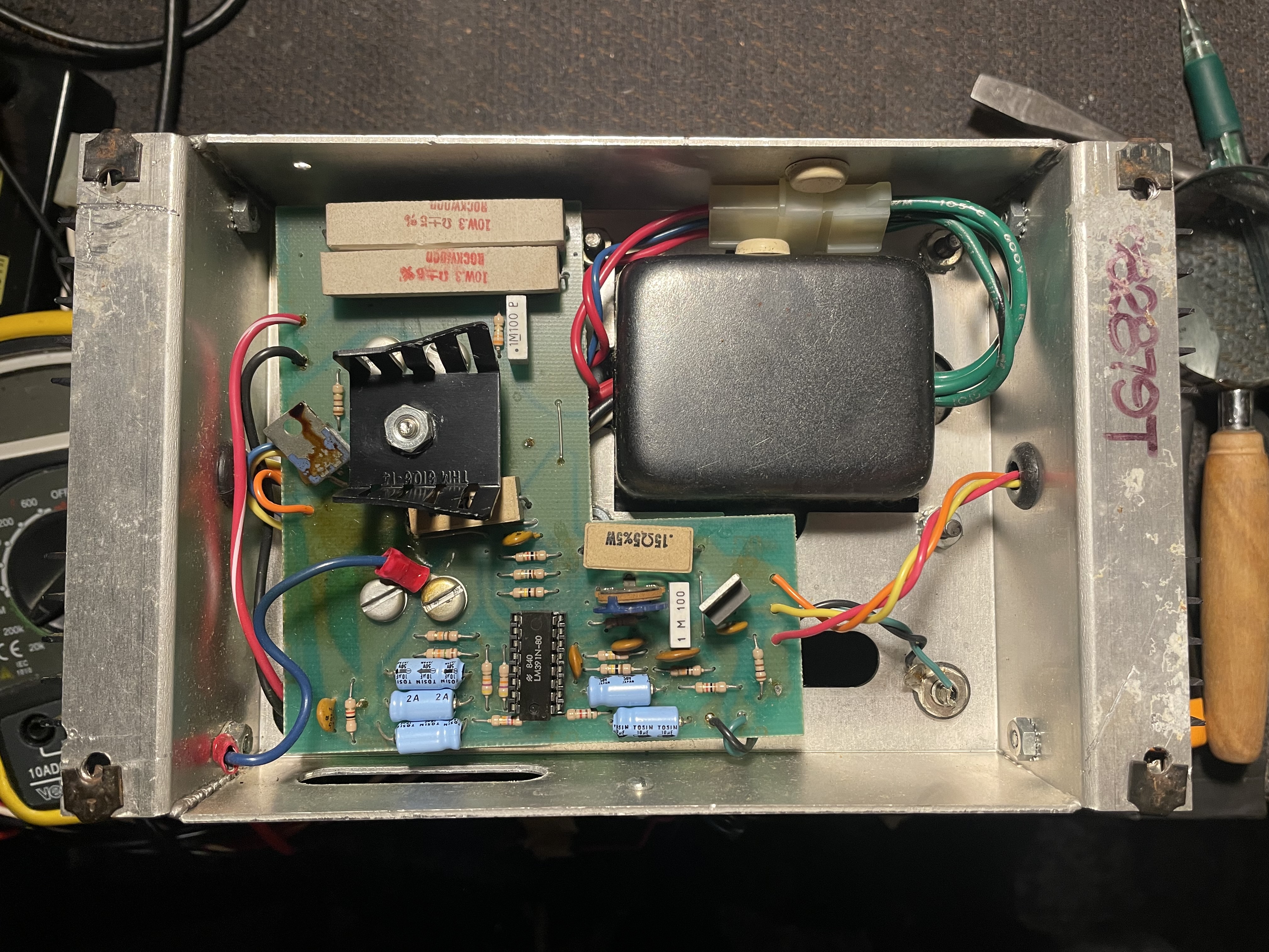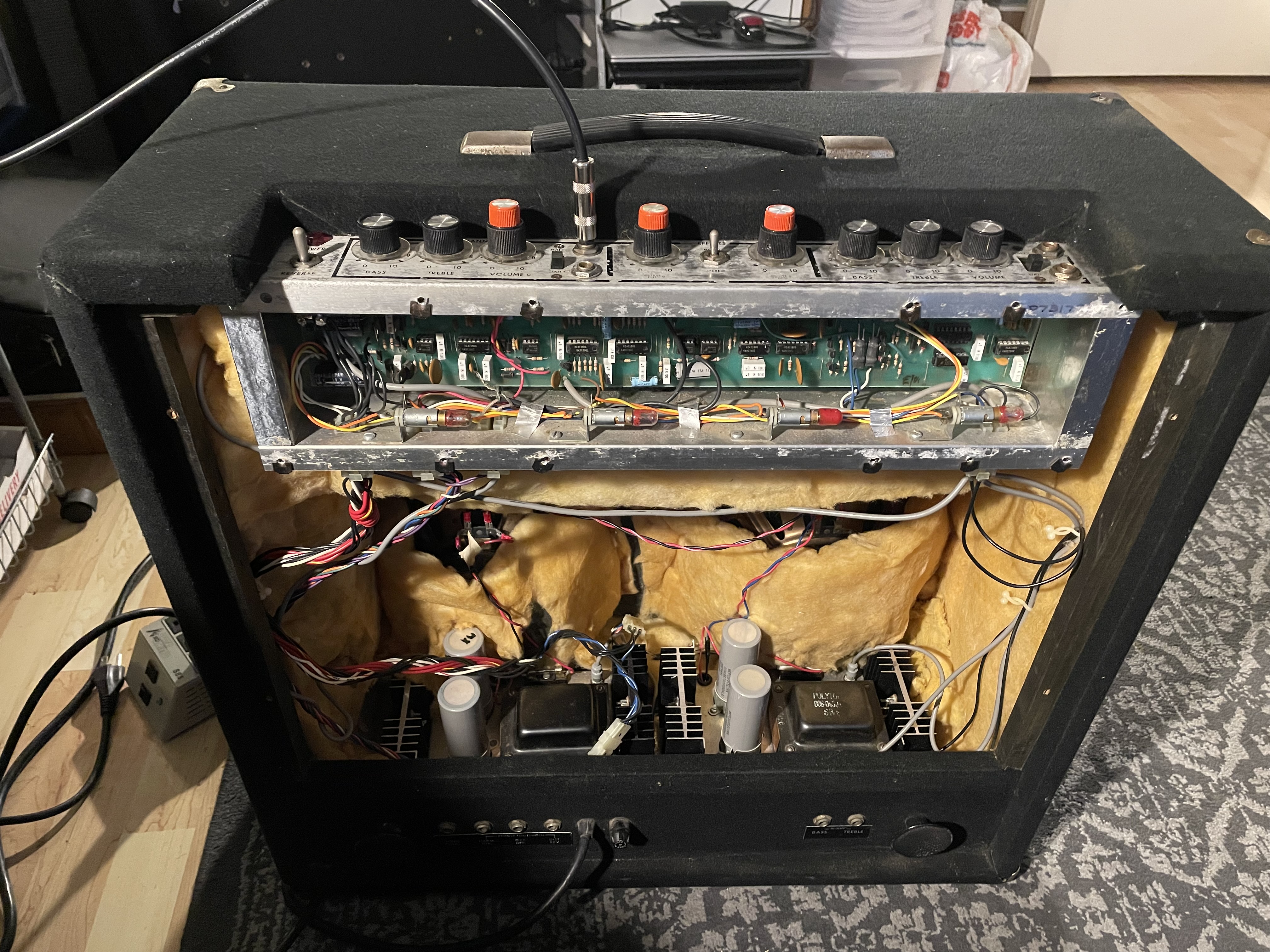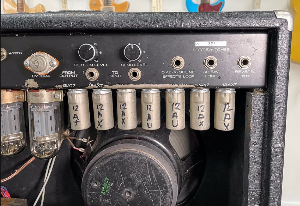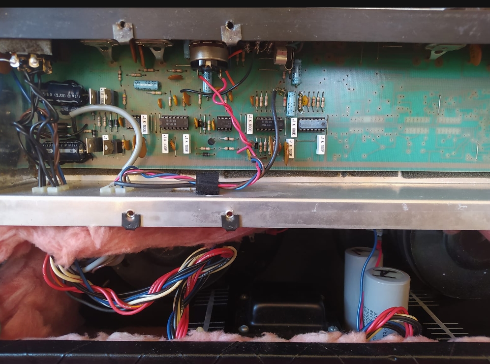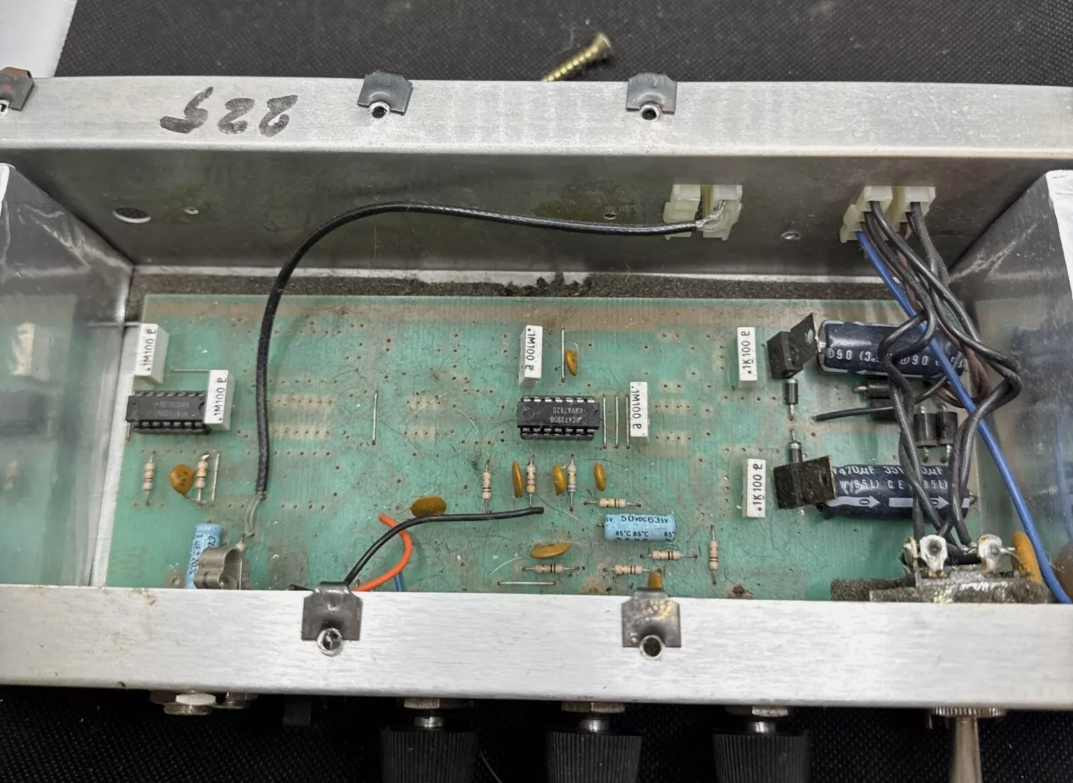 of the IC chips, and in permanent marker is scribbled a date of 1987. This method of dating was also customary on their amps, so likely