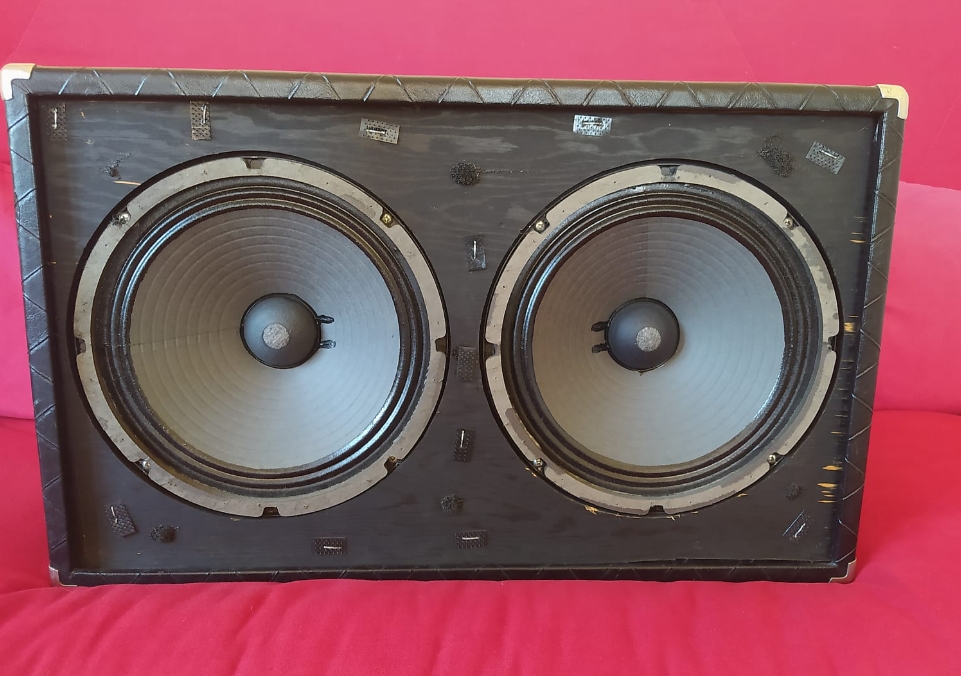 the diamond shaped pattern vinyl cabinet covering and diamond shaped foam speaker cover. This little approx. 27 lb 100 watt