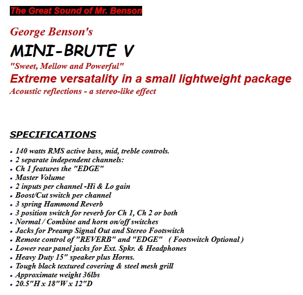 manufactured some time after the Mini Brute II & III models. Power output is 100 watts and weight is approximately 27-28 lbs.