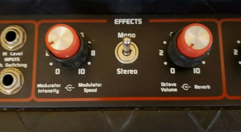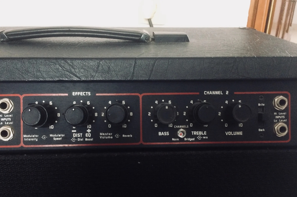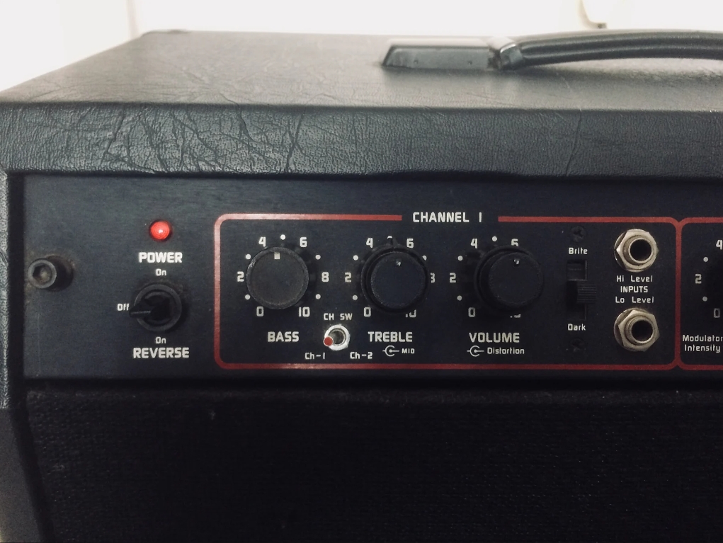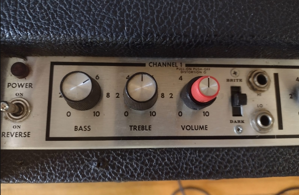 switch, and the usual Hi & Low inputs. The distortion channel has volume control and Gain -/+.