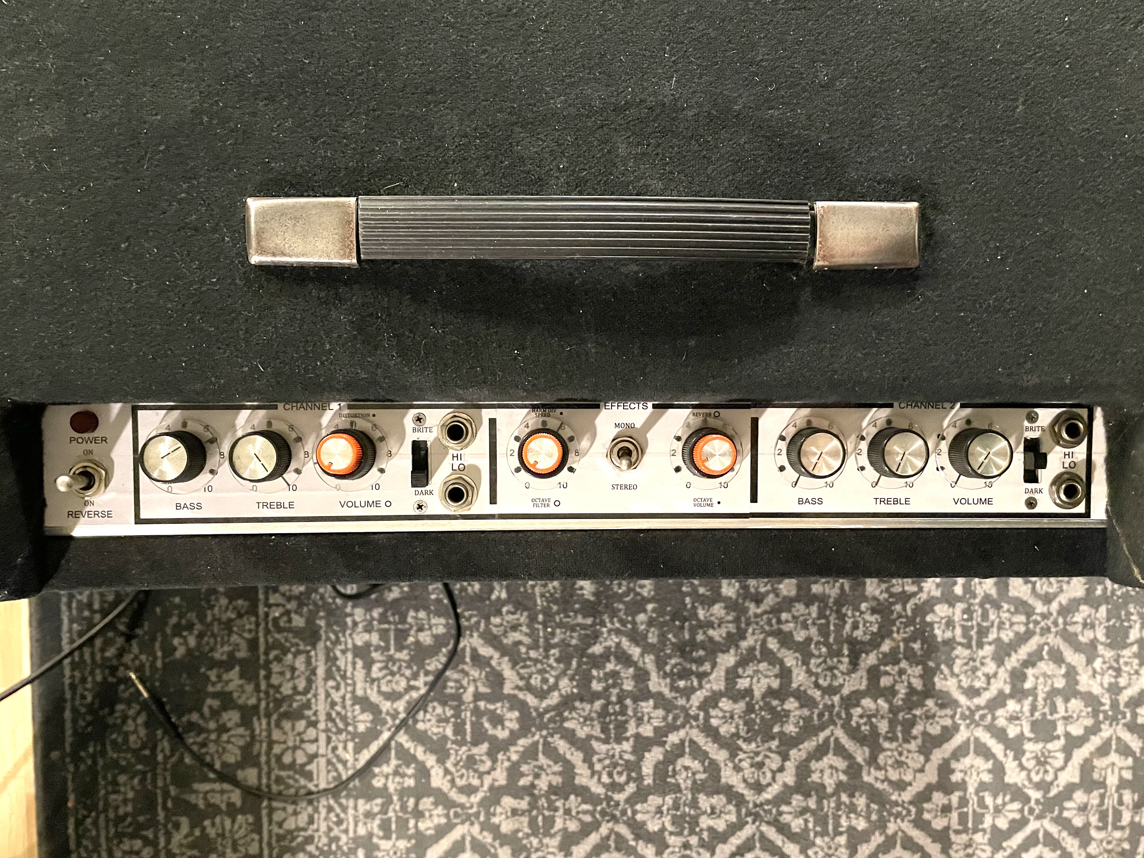 This seldom seen standalone pedal powered by 120V reminds me a bit of the Harmonic Divider of the Model 102 & Model 104 amps but has its