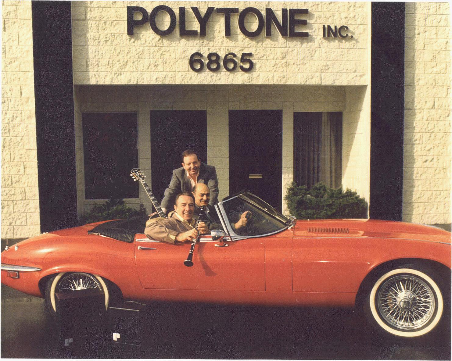 The president of Polytone, Tommy Gumina, shown below in front of his North Hollywood office with Joe Pass; date unknown. Note the Mini Brute