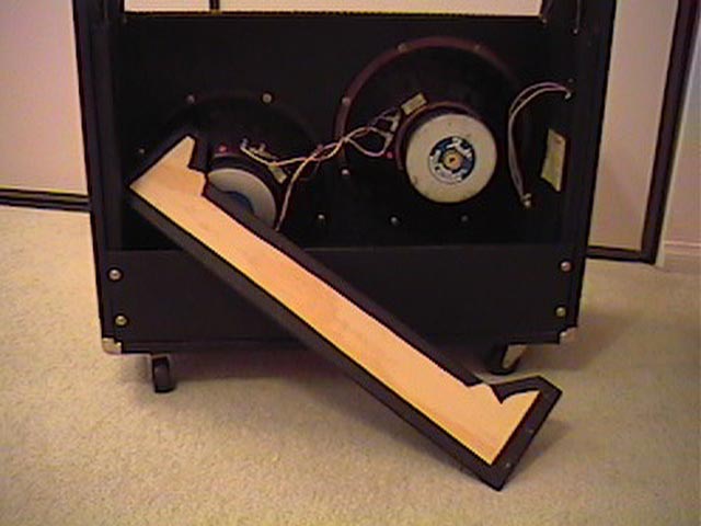 Cabinet construction is finger jointed solid pine with a particle board baffle.
