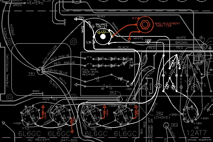 the bias adjustment arrangement. In the black face and early silver face amps, there is a