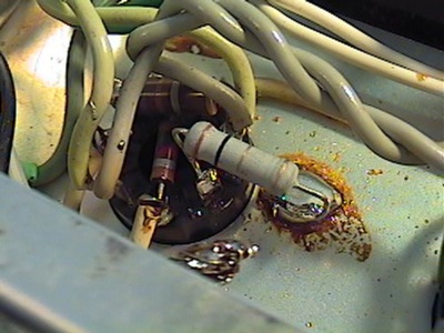 in greenish brown) from its connection to ground. In place of this resistor will go a 100K 1/2 watt