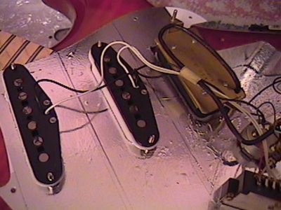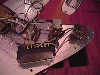 Here is a view "under the hood" showing the original pickguard. The shielding