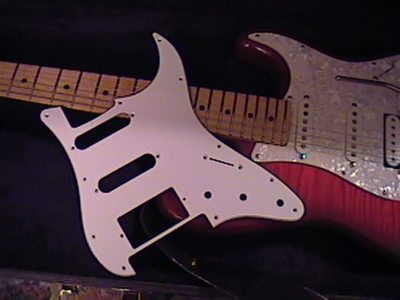 but a replacement. I had to modify it to work with this guitar by enlarging the area near the bridge and the neck. I replaced the original pickguard because my right hand technique causes a static buildup on the pickguard which would end up causing popping noises when I touched the strings. This new pickguard is a 3-ply type, and virtually eliminates my problem while at the the same time dressing up the guitar. A direct replacement pickguard is not