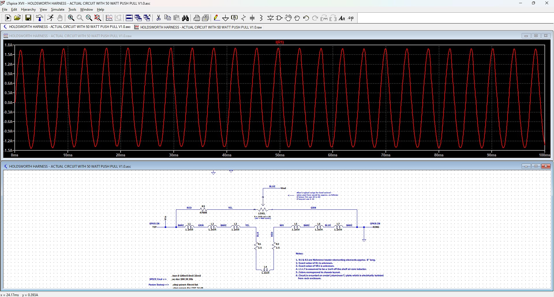Below is the schematic (you can click on the image to see it larger). This is a passive reactive load for the amplifier. As you can see it's just several of these 1mH inductors in series with the